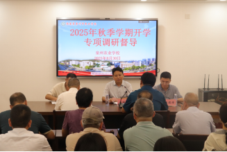 为确保2025年秋季开学各项工作平稳有序推进,2025年8月30日上午,泉州市教育局专职副总督学庄映峰莅临我校开展开学专项督导工作。学校党委书记林忠义、校长苏文伟等校级领导以及相关处室负责人陪同检查。市教育局组织科科长王毅樟、学校安全工作科科长胡志强陪同到校督导。